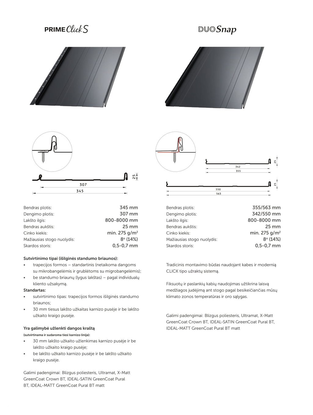 Išorinis užspaudimo užraktas su specialiu profiliu ir optimizuotu aukščiu palengvina surinkimą. Jo konstrukcija kiek įmanoma sumažina lakšto įtempius. Tai naujausia rinkoje užspaudimo technologija. Specialus pakilimas prie užraktų savo ruožtu užtikrina tolygų plokščio plokštės paviršiaus sukibimą su pagrindu ir sumažina bangavimą.