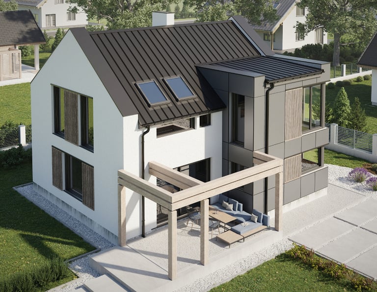 TERRANO stogų ir fasadų plokštės – tai pažangi technologija ir estetiška plokščių konstrukcija su elegantiška apdaila, kuri puikiai tiks tiek klasikinei, tiek moderniai architektūrai. Iš naujo atrastas stogų ir fasadų plokščių potencialas.