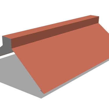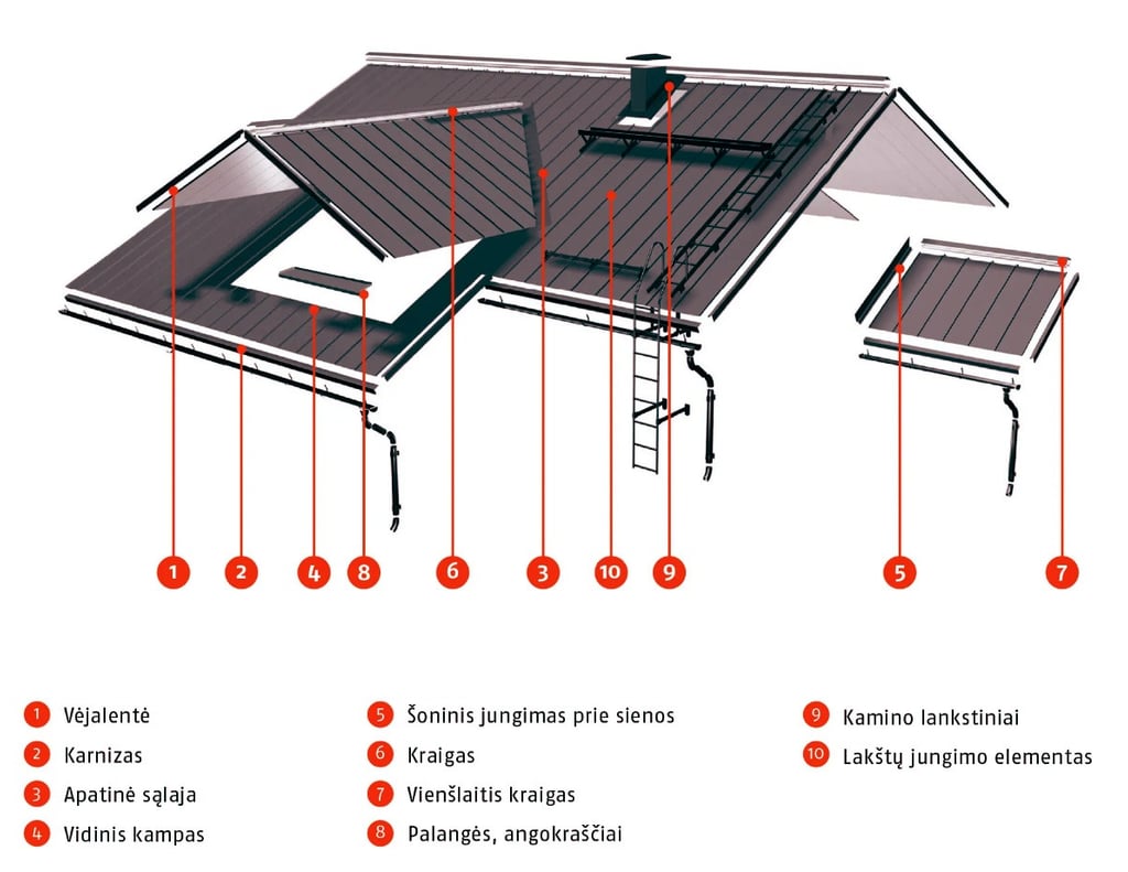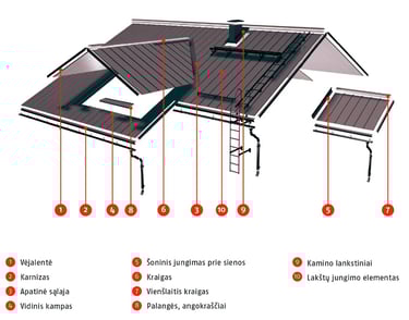 Viršutinė šlaitinio stogo dalis. Apdailos elementas, naudojamas stogo šlaitų sandūros briaunoms sandarinti.
